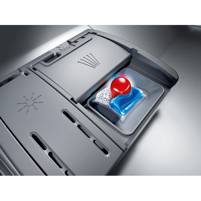 Специальный отсек DosageAssist в ручке короба обеспечивает своевременное и равномерное растворение комбинированных моющих средств (таблеток и капсул)