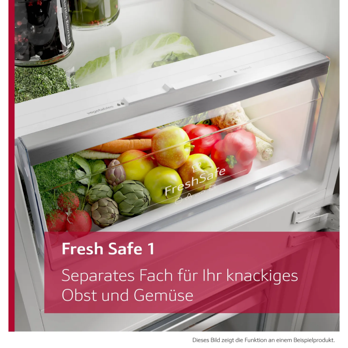 - 5 полок из ударопрочного стекла, из них 4 – переставляемые по высоте, 1 складная 3 Бокс для овощей и фруктов FreshSafe